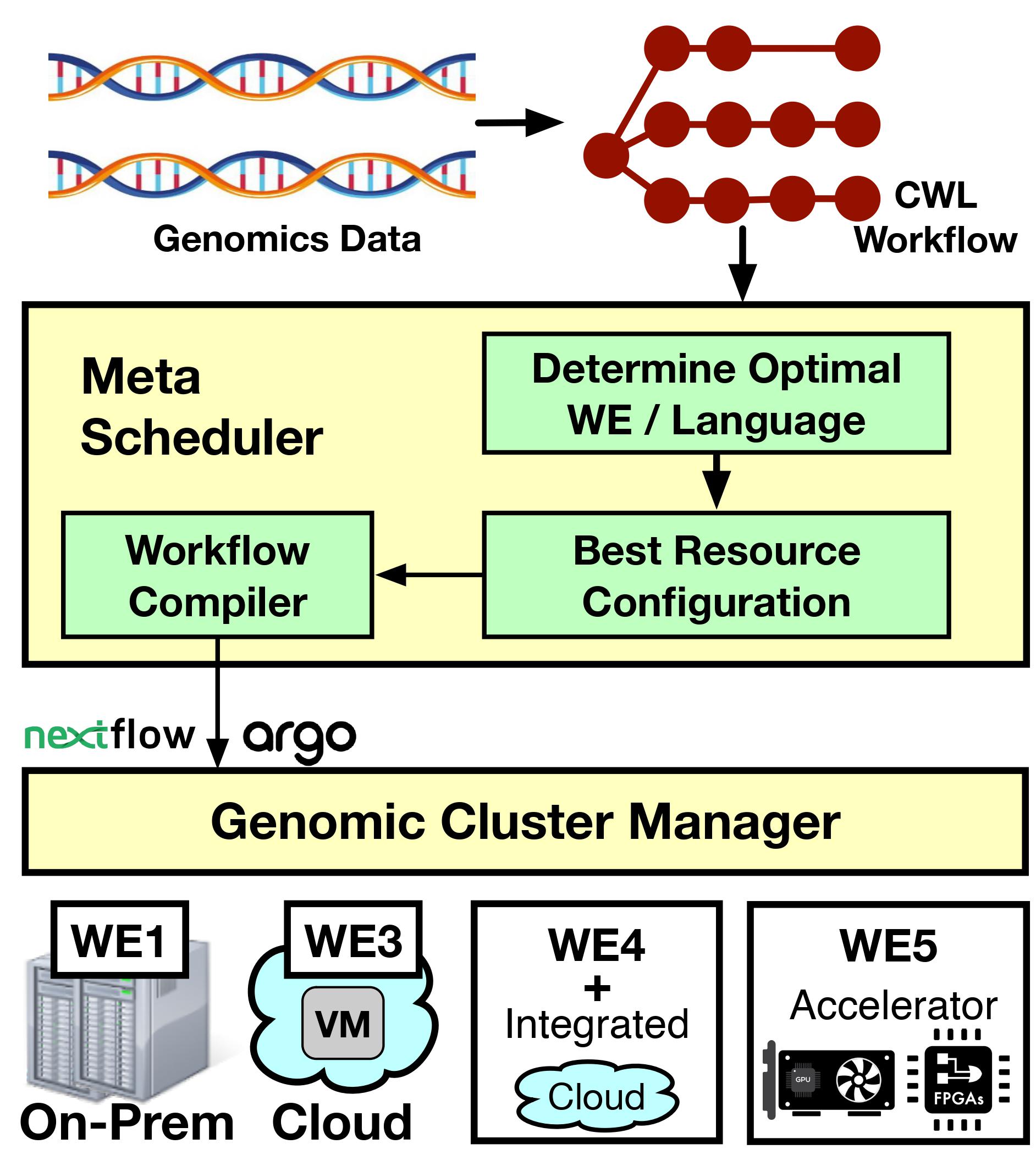 Image: Dr. In Kee Kim, with Drs. Robert Grossman and Haryadi Gunawi at the University of Chicago, received a new NSF grant for their project, "ALL-IN-ONE: Strengthening the System Aspects of Large-Scale Genomics Processing Platforms." The All-In-One project aims to advance state-of-the-art genomic processing systems by developing 1) cluster scheduling optimized for genomic workloads across on-prem, clouds, and accelerators, 2) resource and failure-aware independent task scheduling, and 3) cloud-and-language agnostic meta-compiler for automated performance tuning.
